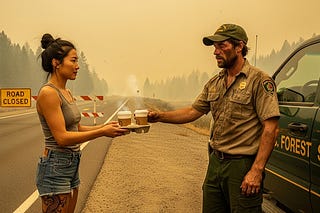 My climbing trip was canceled by the wildfire, so I decided to fuck the ranger at the roadblock instead.